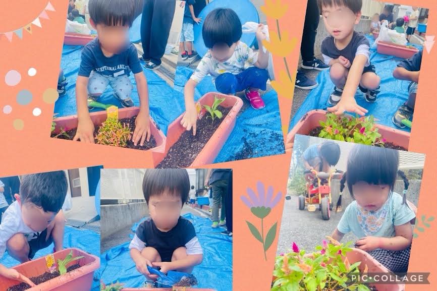 午後から、イルカさんと一緒にプランターへ植え替えました。土や植物に触れ楽しそうにはしゃいでいました😊