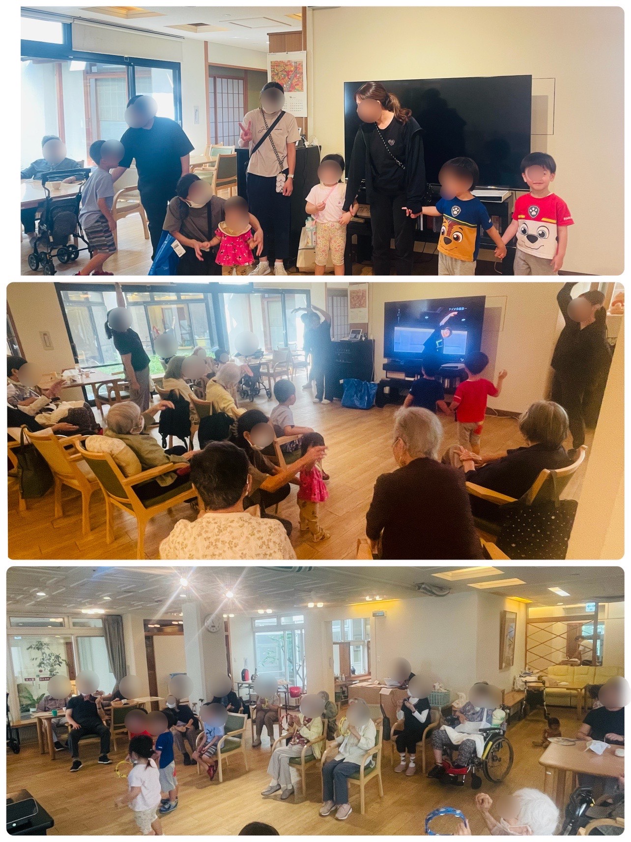 敬老の日を直前に、いつも行っている特別養護老人ホーム『喜楽苑』へ訪問しました。おじいちゃんおばあちゃん達と一緒にラジオ体操や、楽器演奏、歌やクイズをみんなで一緒に楽しみました。