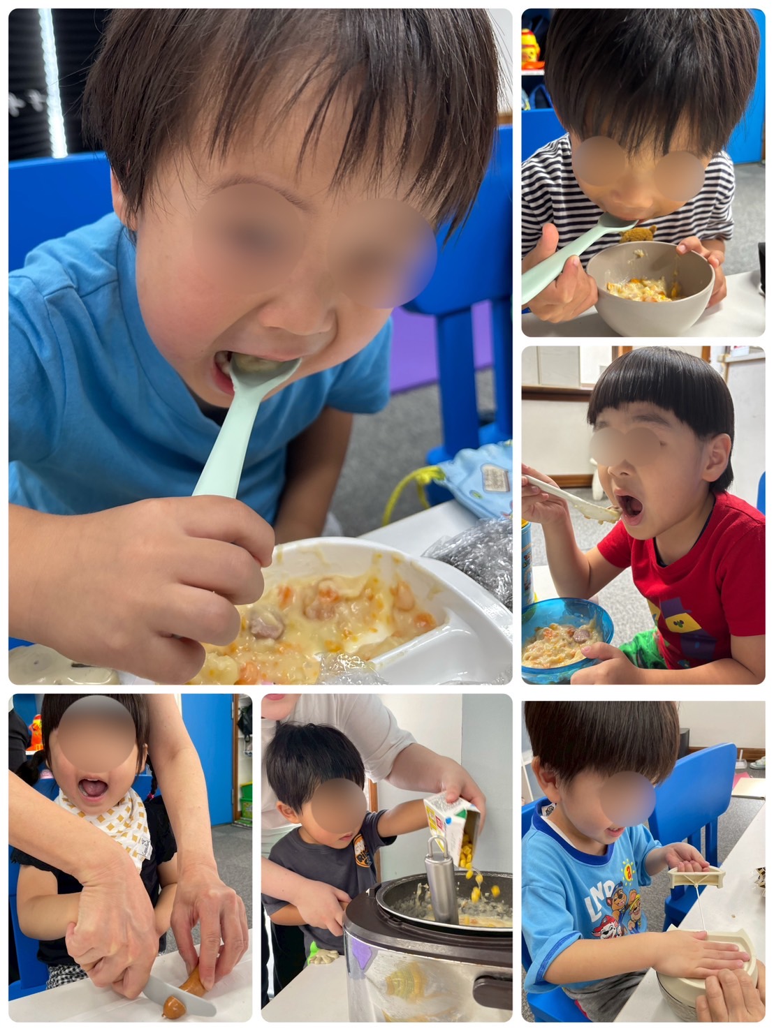 お野菜の苦手な子どもたちも自分で作ったものは格別だったようでモリモリと食べてくれました。クッキングを通して、様々な味や食べたことのないものへの興味を引き出していきます。
