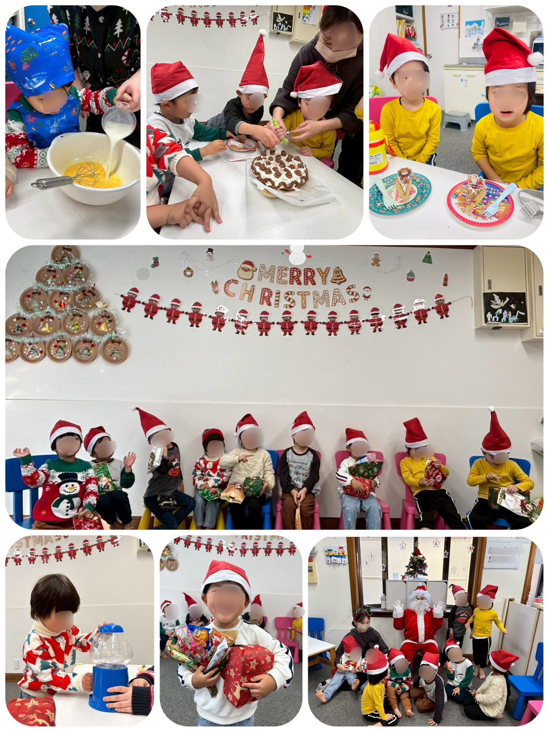 朝はクリスマスケーキ作り、お昼はサンタさんがこっそりなみっこに遊びに来てくれました。